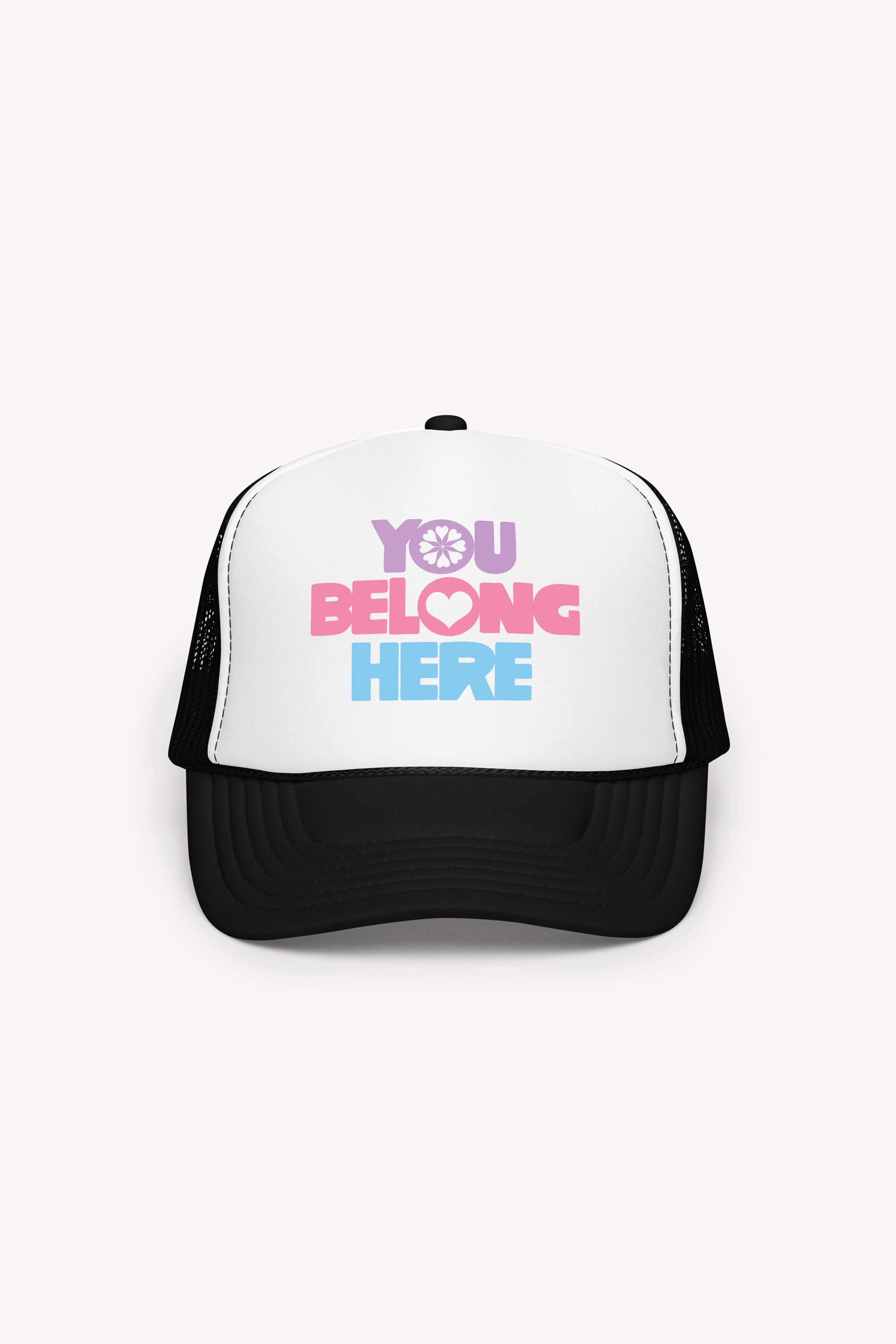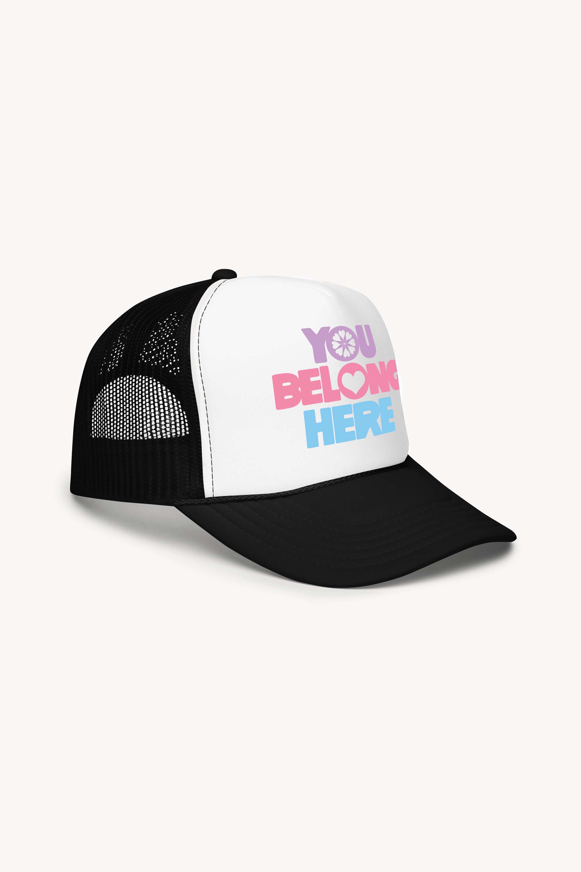 Our new "You Belong Here" foam trucker hats are printed to order. Making products on demand instead of in bulk helps reduce overproduction. That means this part of your order will ship separately from the rest.