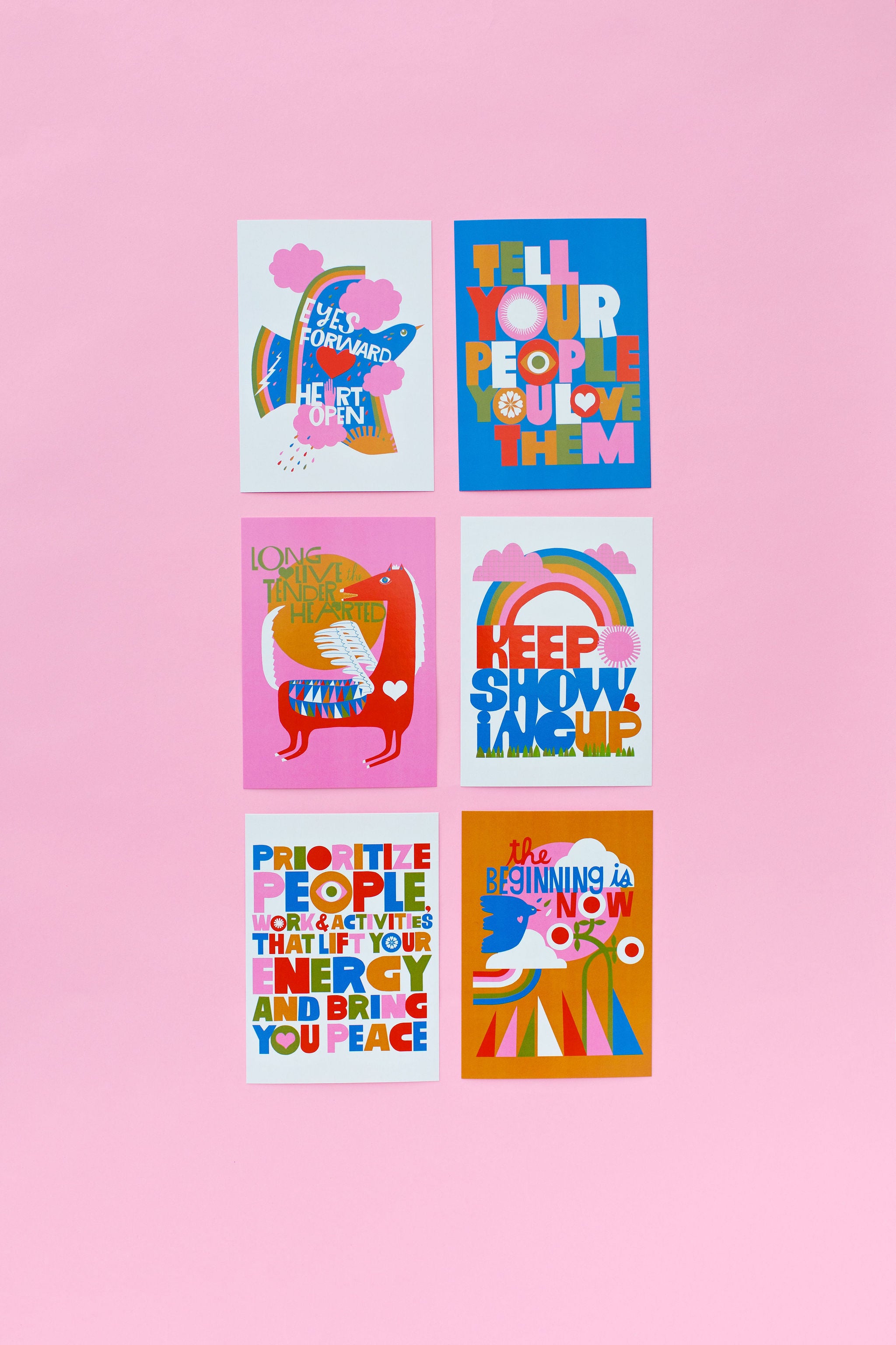 Set of six 5x7 inch postcards featuring encouraging messages lettered and illustrated by Lisa Congdon. Printed in Portland on heavy cardstock. Display as mini prints, mail to a friend, or frame as art.
