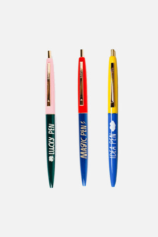 Whether you need some luck, magic or ideas, these retro Bic Clic ballpoint pens are just the thing. Medium ball point pens with black ink. Designed in our Portland studio and printed in Florida.